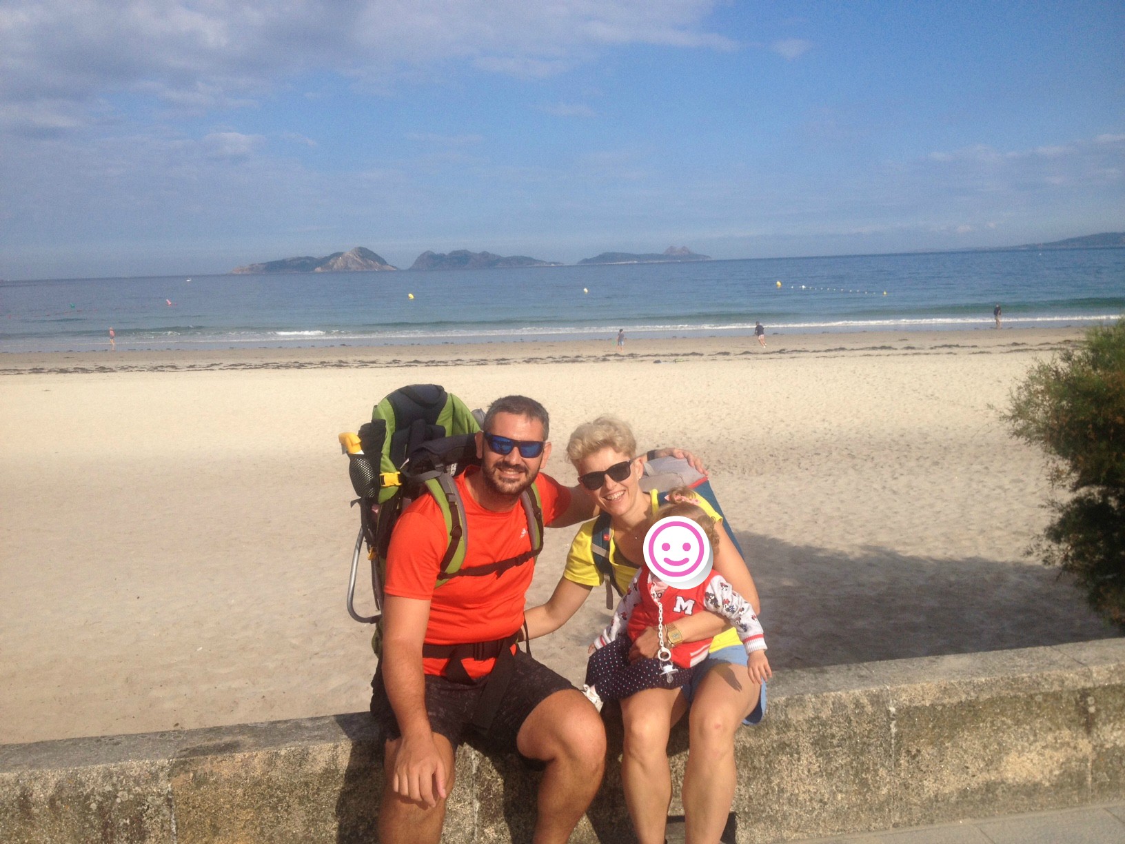 Nos encontrábamos ya en el kms 23 y eran las 15:00, hacia un calor... Para colmo quedaban 13 kms, llamamos a nuestros amigos que se encontraban a 2 kms de donde nosotros nos encontrábamos, nos dijeron que parte del grupo marchaban en taxi, por lo que decidimos sacrificarnos y que Lupe con la niña se fueran al hotel y yo junto a otros tres compañeros terminaríamos la etapa. Desde que termina la playa de Samil y entras en Vigo es todo por ciudad y como podréis observar más abajo cuesta arriba. QUE ETAPA MAS FEA. No hay mucho mas que contar, nada más que seguir las fechas y el GPS para llegar al Hostal Bahía de Chapela (El gps se quedo sin batería 2 kms antes de llegar, por lo que no os dejara en el mismo hotel) Esa noche tomamos unas cervecitas en la terraza y a descansar pronto ya que en Teis no hay nada más que hacer, aunque ver un precioso atardecer, sobre la ria llena de bateas de mejillones, junto a las dos mujeres de tu vida no es poco.